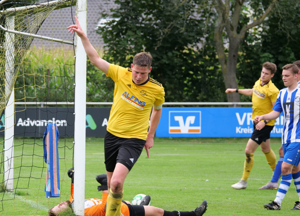 Da die Zweite im Vorspiel gegen Hörstel 3 mit 2:0 ebenfalls drei Punkte einfuhr, kann man von einem gelungenen Fußballsonntag sprechen. Erst in der Schlußphase konnten sich die Schwarz-Gelben entscheidend gegen den Ortsnachbarn durchsetzen. Dank excellenter Vorarbeit von Eckenspezialist Kevin Schmitz hatten "Otti" Ottenhues und zum anderen Alex Wermeling wenig Mühe die Pille zum 2:0 im Netz unterzubringen.